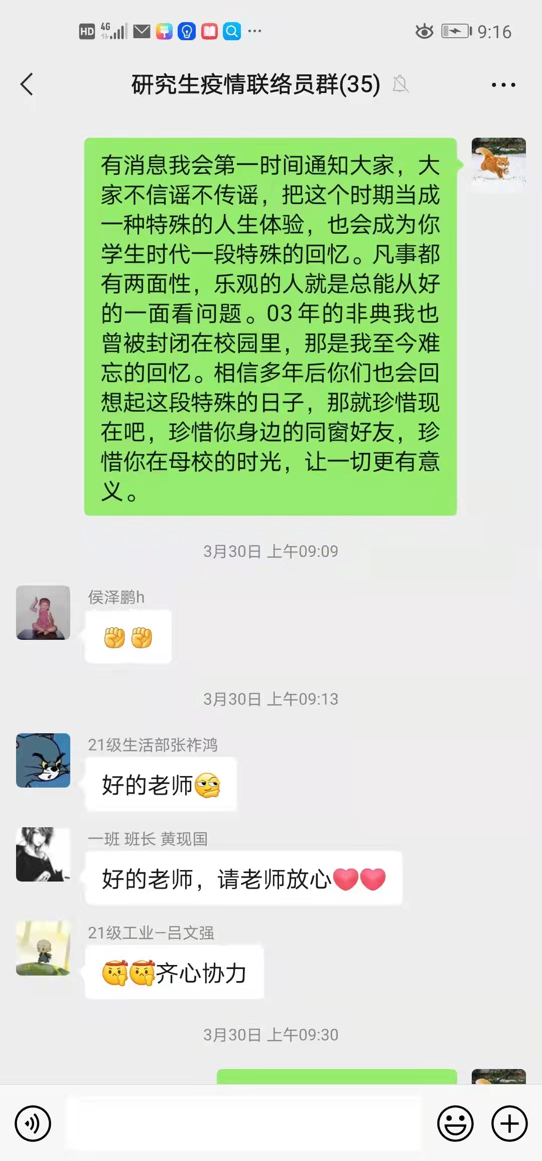 疫情防控是鲜活的思政教育素材,辅导员们共画思政教育同心圆,齐心协力在这场战疫中讲好特殊而又鲜活生动的“思政大课”,引导学生在抗击疫情的硝烟中不断成长,让思政教育既暖心又贴心更走心。