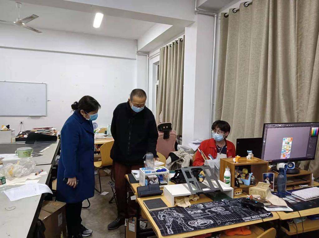 4月3日,院长潘鲁生,副院长张艳霞到应用设计学院调研毕业展创作工作。