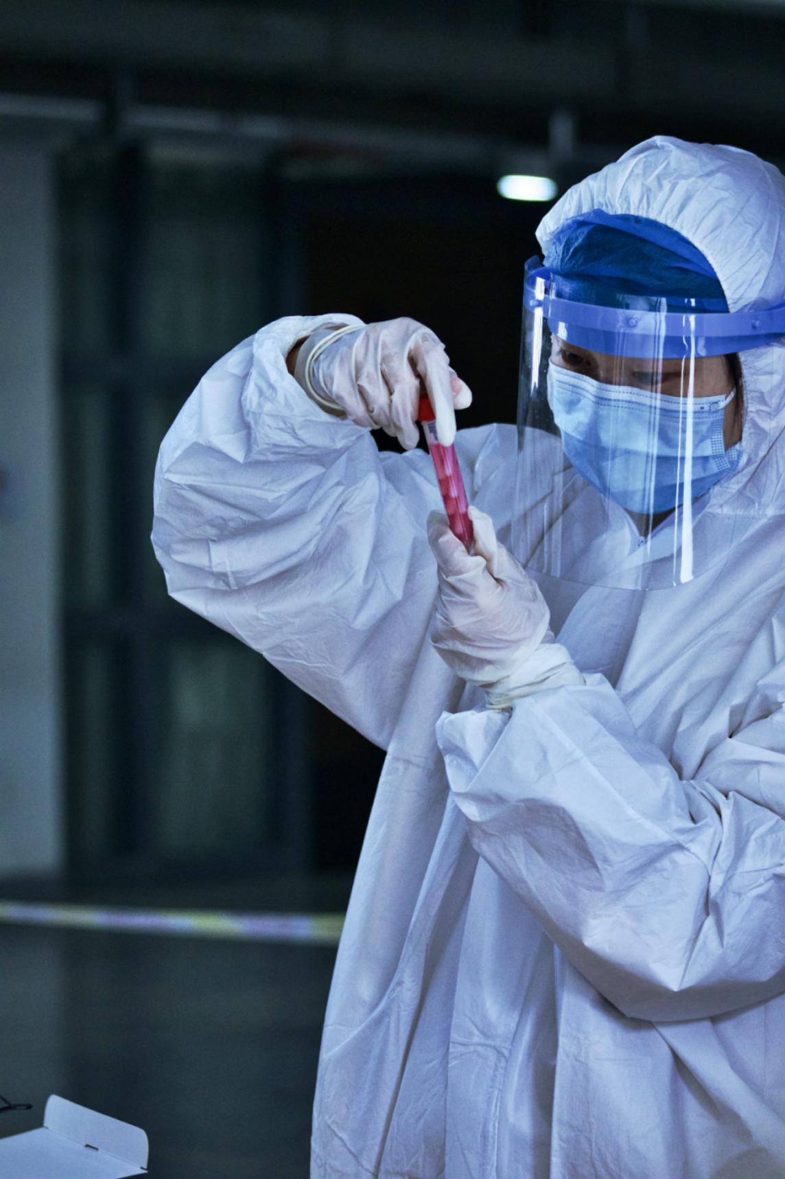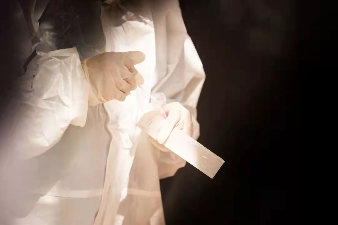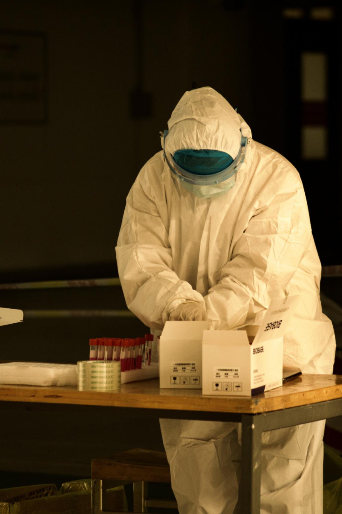 他们每天拿着棉拭子在被检测人扁桃体两侧取样,随后折断手部接触的部分,将棉拭子放入采样管中,最后再为手套消毒,为下一次采样做准备。