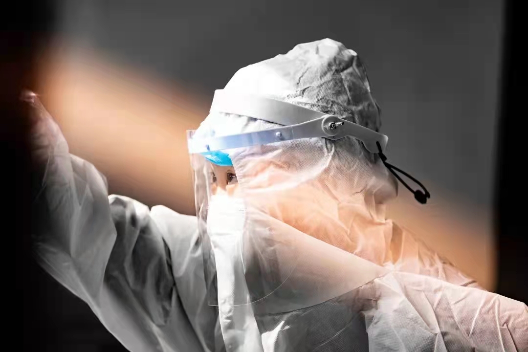他们穿着密不透气的防护服,带着面罩、护目镜,