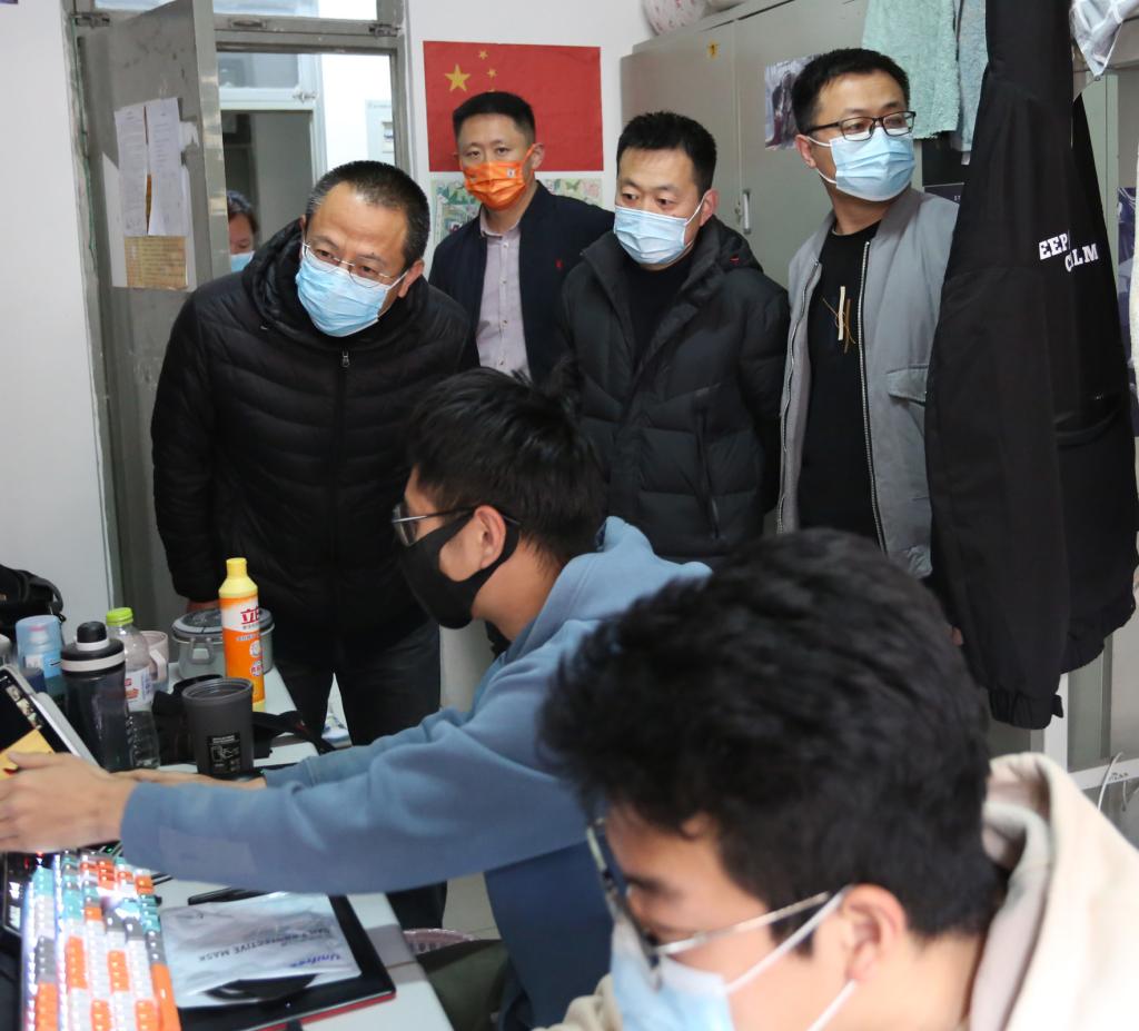 3月31日上午,为了确保线上教学质量,副院长董占军一行在学校教学观摩中心查看雨课堂在线授课情况,到教室和宿舍查看学生学习情况。全校线上教学运行平稳,广大师生精神饱满,教学保障服务良好。