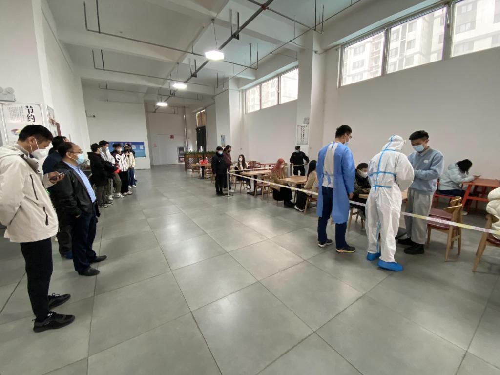 参演人员模拟发现学生体温异常时的应急处置程序,实战演练上报信息、稳定学生情绪、引导留观点、将发热学生送至定点医疗机构发热门诊作进一步检查等应急处置措施。同时,及时对教学楼、公寓、食堂等场所进行清洁消杀。整个演练严格按照预案规定流程进行,分工明确、反应迅速、协调有序,提高了基础教学部师生员工应对突发情况的反应、处置能力,为校园稳定和疫情防控工作有序进行提供有力保障。