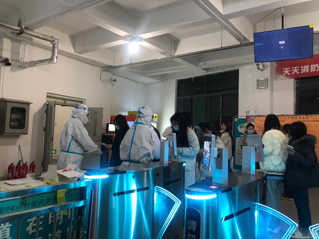学校先后在门岗、教学楼、食堂、学生公寓等重点区域开展演练。模拟学生入校、上课、食堂就餐、宿舍等测温流程,全要素参与、全流程演练。