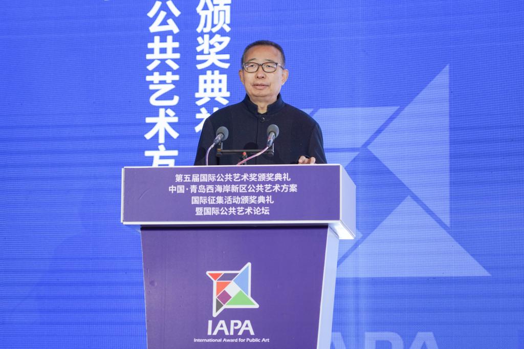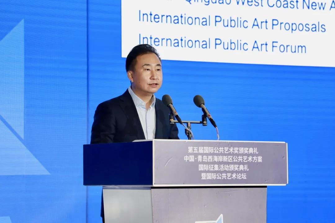 2022年1月14日上午9:00,第五届“国际公共艺术奖”中国·青岛西海岸新区公共艺术方案国际征集活动颁奖典礼暨国际公共艺术论坛系列活动在青岛西海岸新区盛大开幕。中国文联副主席、中国民间文艺家协会主席、yl8cc永利官网院长潘鲁生出席活动。