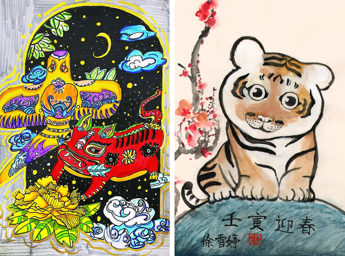 这些作品形态多样,造型生动,充满活力。以极其丰富的绘画语言展示出“虎”形象的千姿百态: 它们或勾勒神韵,或刻画入微;或传递吉愿,或针砭时弊;或朴质淡雅,或浓墨重彩;或诙谐幽默,或发人深省...... 但无论那种形式,都有传承、有创新、有发展,让生肖虎这一传统文化形象彰显出时代品格,为我们呈现出虎文化的视觉盛宴。
