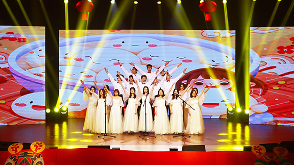 服装学院服装表演班的同学们为大家带来以美学为视觉,艺术与时尚相融合的旗袍展示,在糅合新型奢华面料的基础上,碰撞出时尚灵感与创造力。本次旗袍改良设计作品也是永利官网双专业、多企业合作协同育人定制课堂的成果展示。学校青年教师也带来了精彩纷呈的表演。张晓宁老师的《大鱼》、宋菲菲老师的《梨花颂》委婉与大气相结合,悠远的国乐之风,余音绕梁,不绝于耳;王晓琼、徐帅老师带来的《但愿人长久》真切表达了对永利官网全体师生的美好祝愿;陈锋老师的《笑忘书》、康映雪老师的《萱草花》以感性缓和的旋律动人心弦,感人至深。