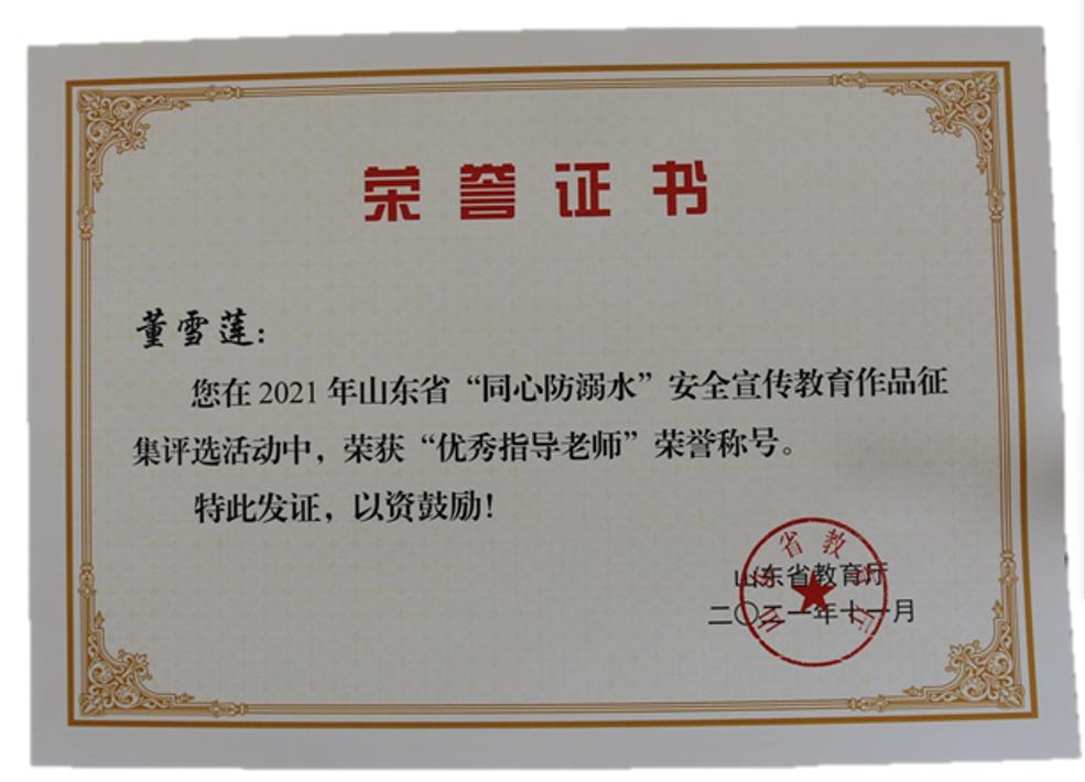 近日,由山东省教育厅等7部门联合组织开展的“同心防溺水”安全宣传教育作品征集和校园安全短视频大赛评选结果揭晓,永利官网师生喜获佳绩,分别荣获一等奖2个,二等奖11个,三等奖12个,优秀奖1个,1人获“优秀指导老师”荣誉称号。