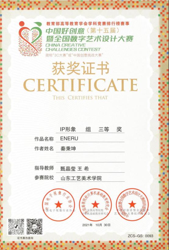 在“中国好创意暨全国数字艺术设计大赛”和“两岸新锐设计竞赛·华灿奖”中,产教融合青岛基地学生斩获全国赛道、山东赛区多项奖励。其中,秦秉坤三维作品《ENERU》获得“中国好创意”全国赛道三等奖;周子顺三维作品《火塘神女》获得“中国好创意”山东赛区二等奖;杨文军三维作品《醒年》获得“中国好创意”山东赛区三等奖。韩智超三维作品《机械革命》获得“华灿奖”省赛三等奖;刘晓雅三维作品《如虎添财》获得“华灿奖”省赛三等奖;张昀祺、王延忠、曹小驹、王一鸣无人机摄影作品《听海》获得“华灿奖”省赛三等奖。