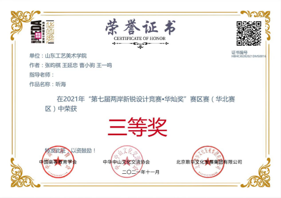 一直以来,产教融合青岛基地积极鼓励学生参与设计赛事,培养创新意识,在凝聚科学、艺术、人文融合、基础素养、实践能力上,实现多方协同育人,“以赛促学,以赛促教”,推进产教融合,极大地提高了学生的综合应用能力。学生作品在多个比赛中相继获奖,充分展现了青岛基地产教融合联合培养模式的作用,参赛同学获得了难得的锻炼机会,也是对青岛基地专业教学成果的一次肯定。