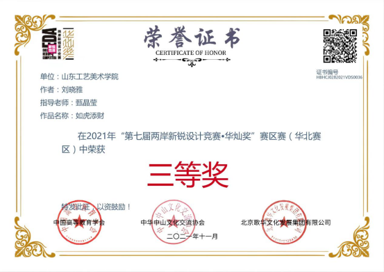 两岸新锐设计竞赛·华灿奖由中国高等教育学会、中华中山文化交流协会和北京歌华文化发展集团主办,旨在发现、推介两岸四地青年设计师的综合设计赛事。竞赛面向青年设计师和高校师生,以创新、时尚、实用为评审原则,选拔最具创新意识和培养潜力的青年设计人才。