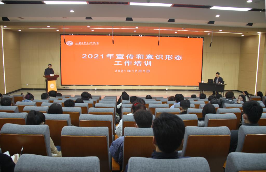 为进一步提高学校领导干部媒介素养,提升突发事件和舆情应对处置能力,12月9日下午,学校开展2021年宣传和意识形态工作培训,山东省教育厅(省委教育工委)新闻中心主任、一级调研员宋全政应邀来到yl8cc永利官网,作题为“高校领导干部的媒介素养——谈谈高校舆情引导与校园传播”的主题报告。学校党委副书记苗登宇出席报告会,报告会由党委委员、宣传部部长韩文涛主持。