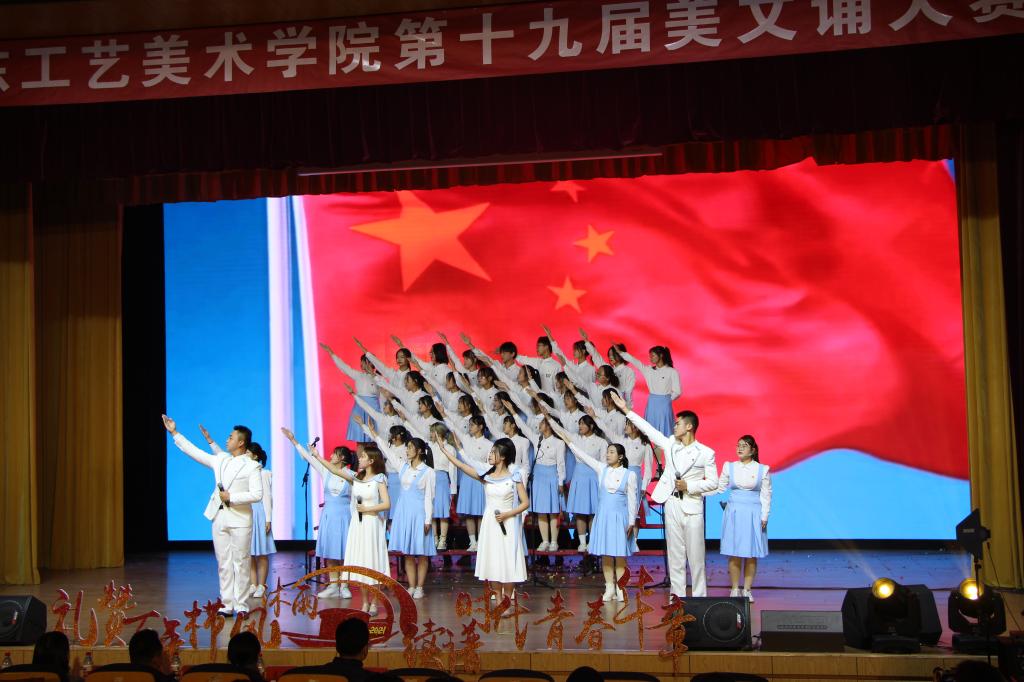 本次大赛以“礼赞百年栉风沐雨,续谱时代青春华章”为主题,来自学校不同学院和部门的十支队伍,以诵读美文的形式,向党的百年华诞献礼。建筑与景观设计学院代表队带来了《前途似海,来日方长》,他们用激情澎湃的诗篇,忆往昔峥嵘岁月,抒胸中凌云壮志;人文艺术学院代表队诵读的篇目是《青春中国》,他们愿以青春之我,建设青春之国家,青春之民族;造型艺术学院代表队带来作品《以吾辈青春,守盛世中华》,热血的文字、激昂的呐喊表达出青年不负韶华、为梦想奋斗的决心;现代手工艺术学院代表队诵读了《吾有所爱,其名华夏》,以坚定步伐迈向强国之路;数字艺术与传媒学院代表队带来了《栉风沐雨,砥砺前行》,他们与时俱进,开拓创新,争做时代新青年;工业设计学院代表队的作品《致敬百年风华,续写时代华章》,用百舸争流之势,续中华民族之魂;基础教学部代表队带来《筑梦青春,强国有我》,他们坚定信念、不忘初心;应用设计学院代表队诵读了《百年红帆,薪火相传》,用饱满的精神面貌,迎接新的征程;视觉传达设计学院代表队诵读作品《青春向党,不负韶华》,以异彩纷呈的画卷,描绘出青春靓丽的色彩;服装学院代表队带来了《展望未来》,表达了对党的美好愿望,展望未来,一路繁花。本次大赛在造型艺术学院学子们的歌声《灯火里的中国》中落下帷幕。