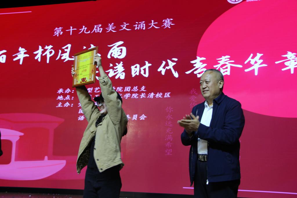 11月17日,由校党委宣传部、团委、语言文字工作委员会主办,造型艺术学院团总支承办的yl8cc永利官网第十九届美文诵大赛在长清校区学术报告厅举办,党委副书记苗登宇、纪委书记苗新民出席并观看比赛。