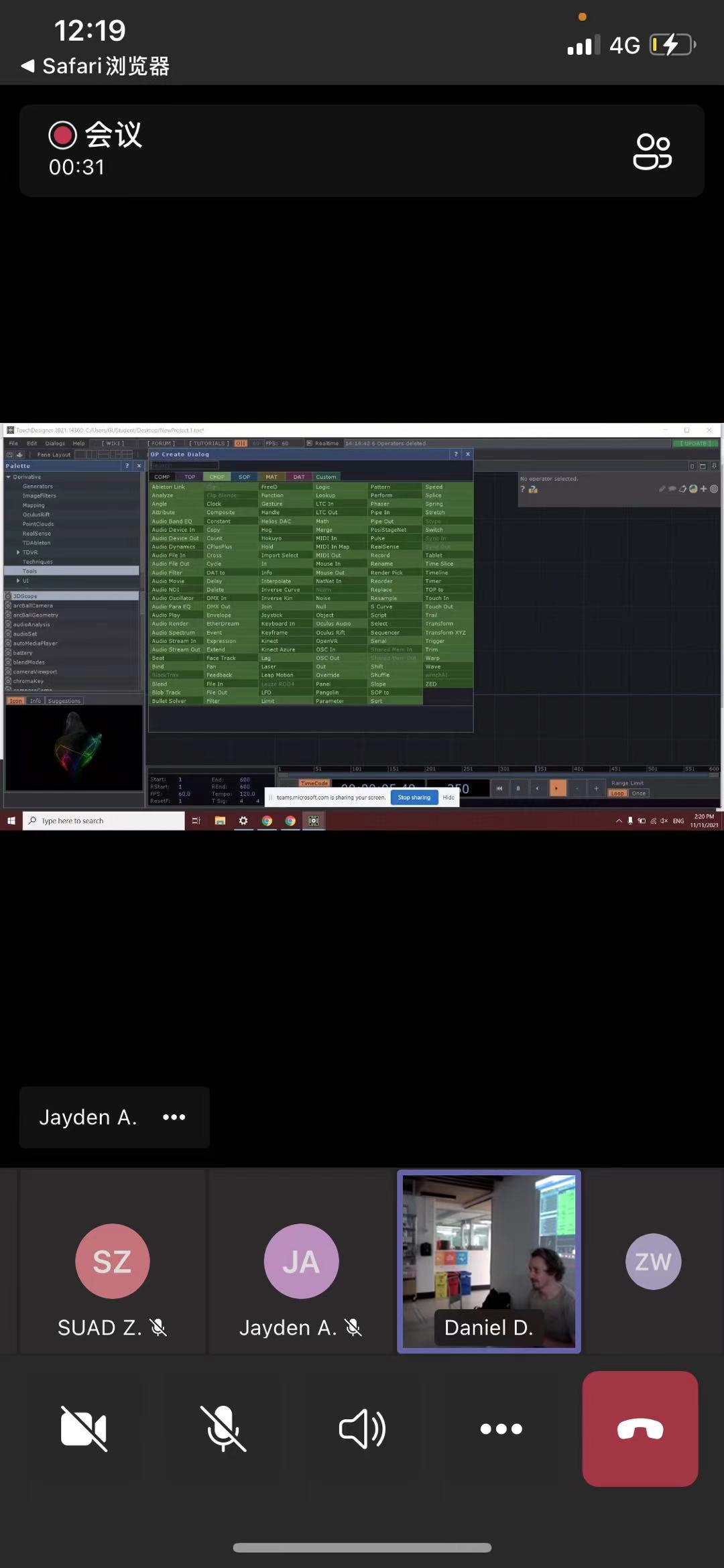 由昆士兰艺术学院客座教授、布里斯班大学教授Jayden Allen负责指导的“沉浸式系统(工作坊)”通过互动编程软件“TEACHDESIGN”进行感应程序的编程设计演示教学。JaydenAllen详细介绍了软件的设计领域和控制范围,并即时完成一个关于声音控制影像的程序,演示其在现实应用中的效果。