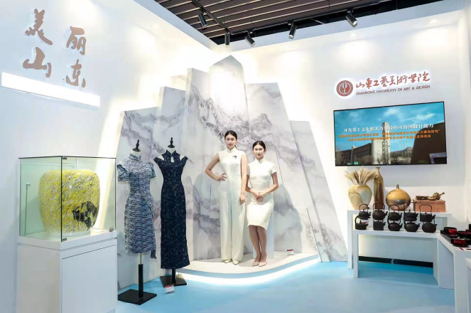 服装、陶瓷、首饰、漆器、铸铜鼎、草艺品……这一件件作品用多种角度呈现儒商文化与设计创新转化并重的教学成果,向中外来宾集中展示厚植于齐鲁大地的优秀文化、匠心产品以及超前、务实的办学理念。