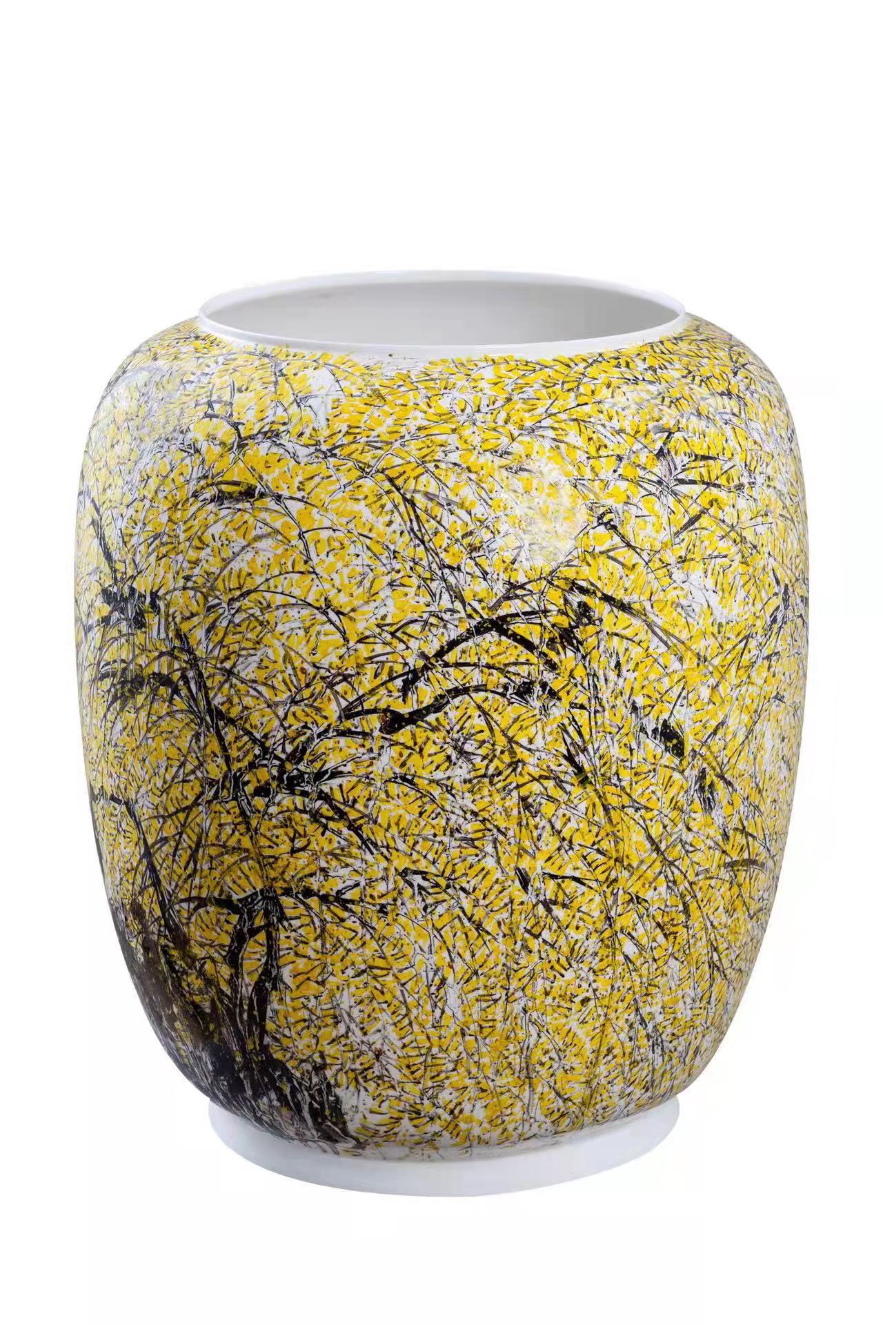 展厅里最吸引人的一件作品是yl8cc永利官网的院长潘鲁生教授与山东福泰陶瓷合作的一件名为《四季平安》的陶瓷花瓶,潘鲁生教授将材料的精致、绘画的精微和制作的精湛巧妙地结合起来,体现出国瓷、国画和国窑相辅相成、浑然一体的艺术与设计水准。
