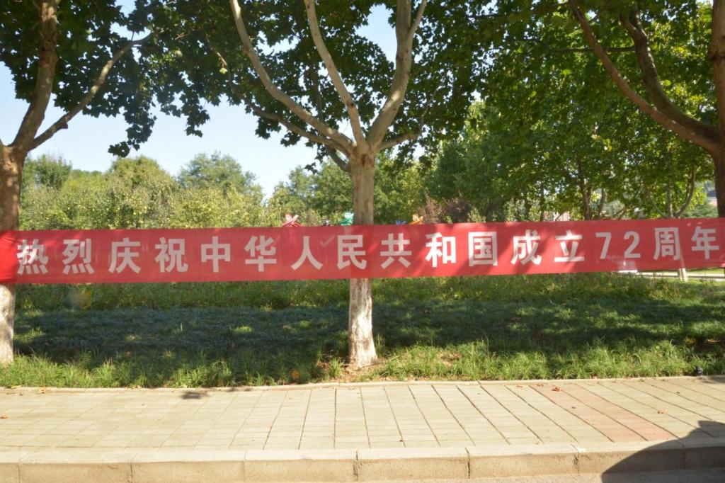红色华诞,国旗飘扬。为庆祝中华人民共和国成立72周年,迎接国庆佳节,营造团结奋进、热烈喜庆的节日氛围,学校结合党史学习教育,广泛开展宣传动员,积极布置校园场景,充分营造浓厚喜庆的节日气氛,努力营造稳定、繁荣、和谐、发展的校园氛围,为祖国72周年华诞献礼。