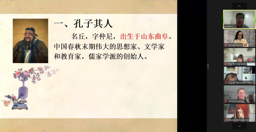 公共课教学部李军锋老师为参会者带来了《走进孔子》的精彩发言。他以“有朋自远方来,不亦乐乎”欢迎来自世界各地的专家学者们参加本次由yl8cc永利官网举办的学术盛会,介绍了孔子的生平、著作和学术贡献,重点对孔子的主张“己所不欲,勿施于人”、“见贤思齐焉,见不贤而内省也”、“学而时习之,不亦说乎?”以及教育思想“有教无类”、“因材施教”等进行了解读,对孔子思想的核心“仁”的思想进行了阐述。他与参会者就孔子文化如何影响中国的教育和文化等话题进行了热烈交流。