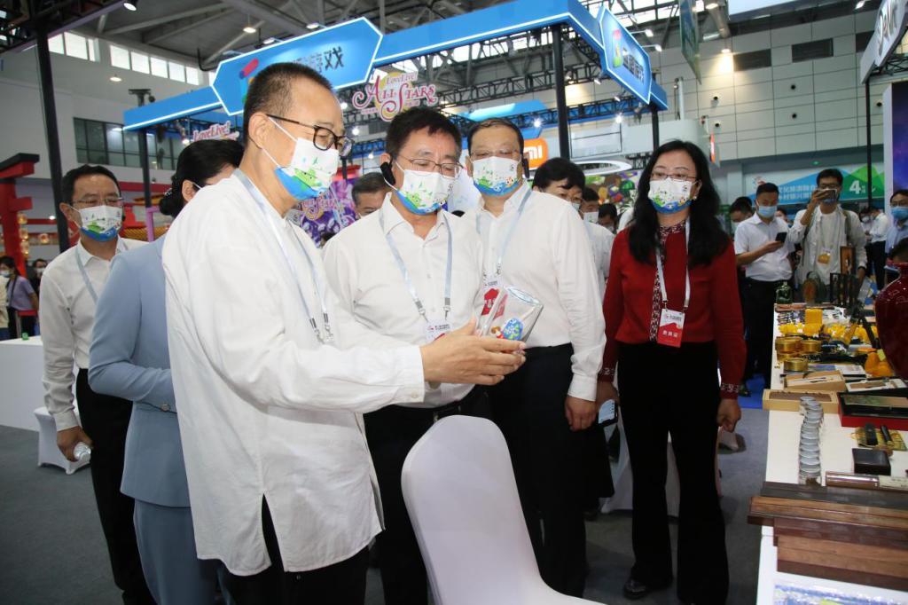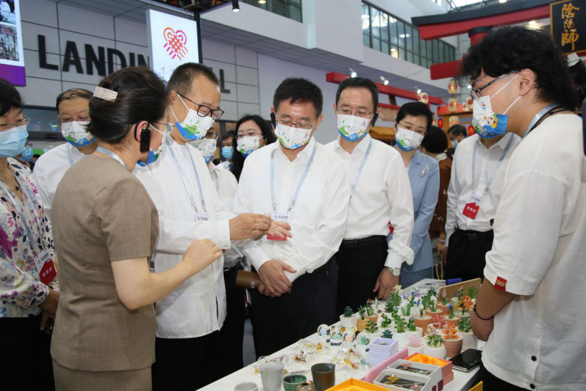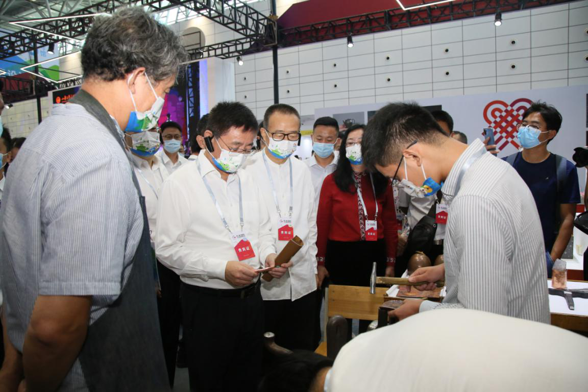9月16日上午,第二届中国国际文化旅游博览会在济南山东国际会展中心开幕,省委常委、宣传部部长白玉刚到永利官网“手造集市”展区参观指导,院长潘鲁生、副院长李新陪同参观。