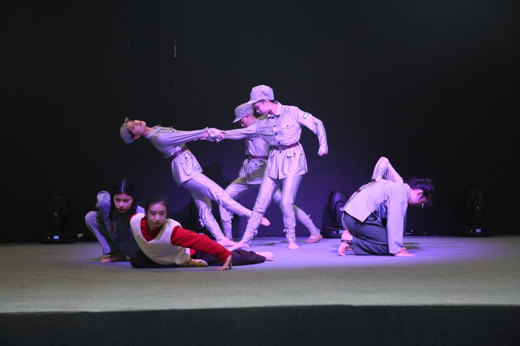 同学们用舞蹈特有的方式,生动诠释了“红色芳华,血染中华”“红色芳华,精神传承”“红色芳华,巾帼之姿”,在铿锵有力的音乐与翩翩舞步的交织中将现场观众带回到那段激情燃烧的岁月。演员们通过互相搀扶,踱步前进,艺术处理上利用重复手法强调倒下爬起的动作,生动诠释了中国共产党人的舍生忘死、英勇顽强的革命精神。跨入崭新的历史时期,充满激情和理想的文工团女兵依然不忘红军精神,扛起宣传党、歌颂党的伟大旗帜。通过圆形、三角形的场面调度,强调画面整体感,突出“向上”的动律特点,体现出万象更新的新风貌和激动人心的氛围。在党的坚强领导和红色基因的传承下,新时代的女兵们用最美年华书写别样青春,用实际行动履行对党忠诚、牢记使命的神圣誓言。她们正以巾帼之姿,赴铿锵之约!