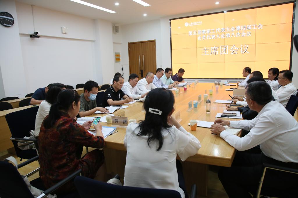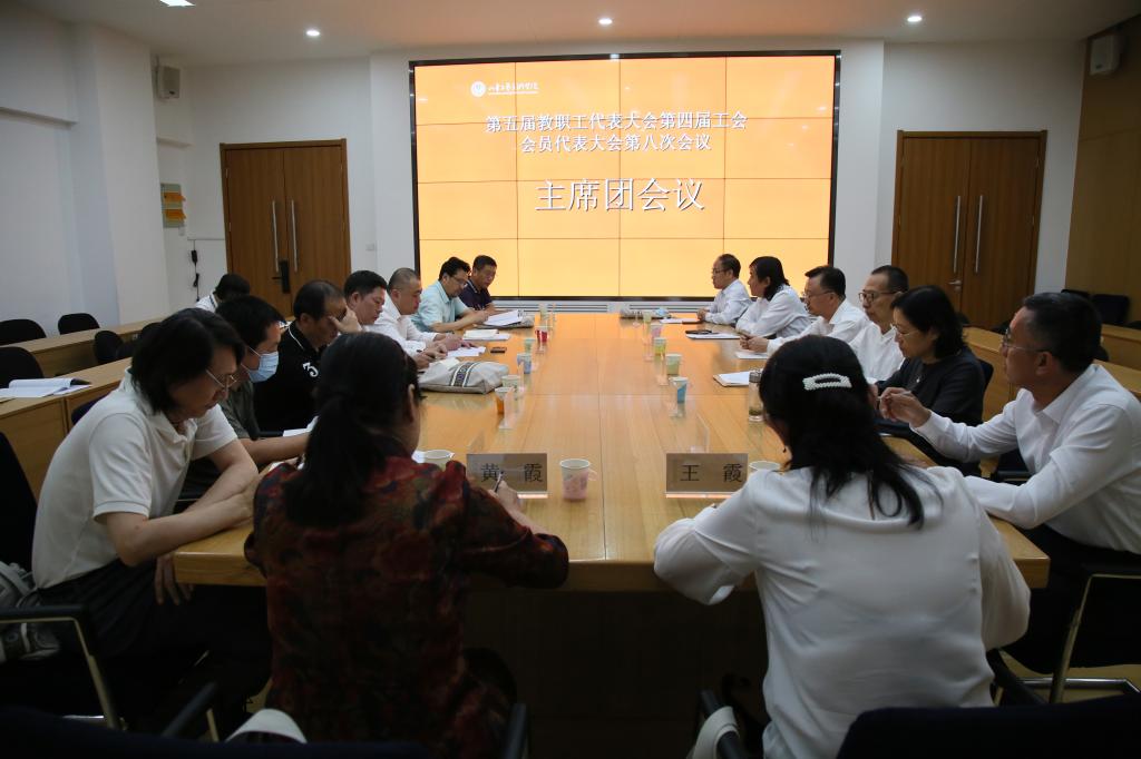 9月9日下午,yl8cc永利官网第五届教职工代表大会第四届工会会员代表大会第八次会议主席团会议在长清校区第三会议室召开。大会主席团成员出席会议。党委副书记苗登宇主持会议。