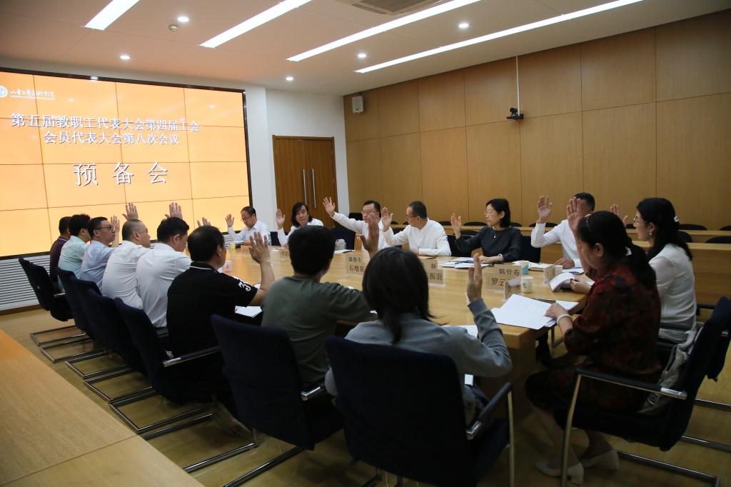 9月9日上午,yl8cc永利官网第五届教职工代表大会第四届工会会员代表大会第八次会议主席团预备会议在长清校区第三会议室召开。主席团全体成员参加会议。院长潘鲁生主持会议。