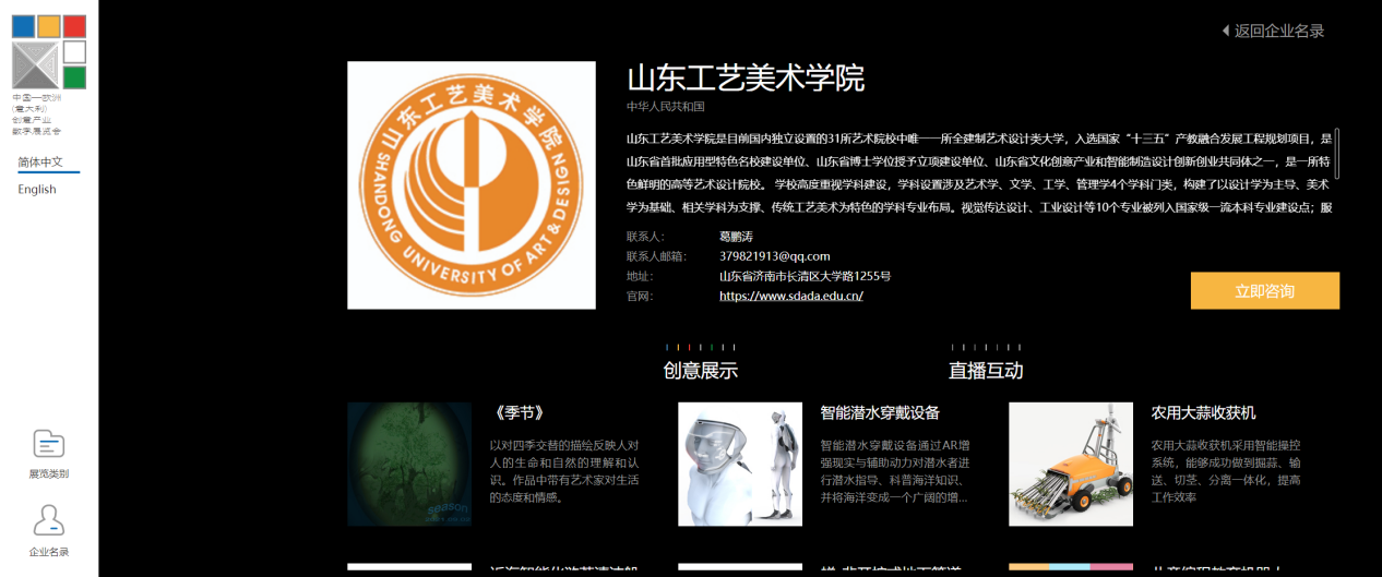 此次数字展内容涵盖视觉艺术、工业艺术、建筑与环境艺术、交互多媒体、服装时尚艺术等各类与生活相关创意设计类成果。永利官网作为设计类高等院校在收到国家贸促会邀请后高度重视参展筹备工作,由学校服务山东省文化创意产业发展管理委员会牵头,组织专班负责作品征集和遴选。此次展览展示了永利官网师生在创意产业领域取得的不菲成绩,同时也体现了永利官网在文化创意产业方面的成就,是走出山东迈向世界的展现。