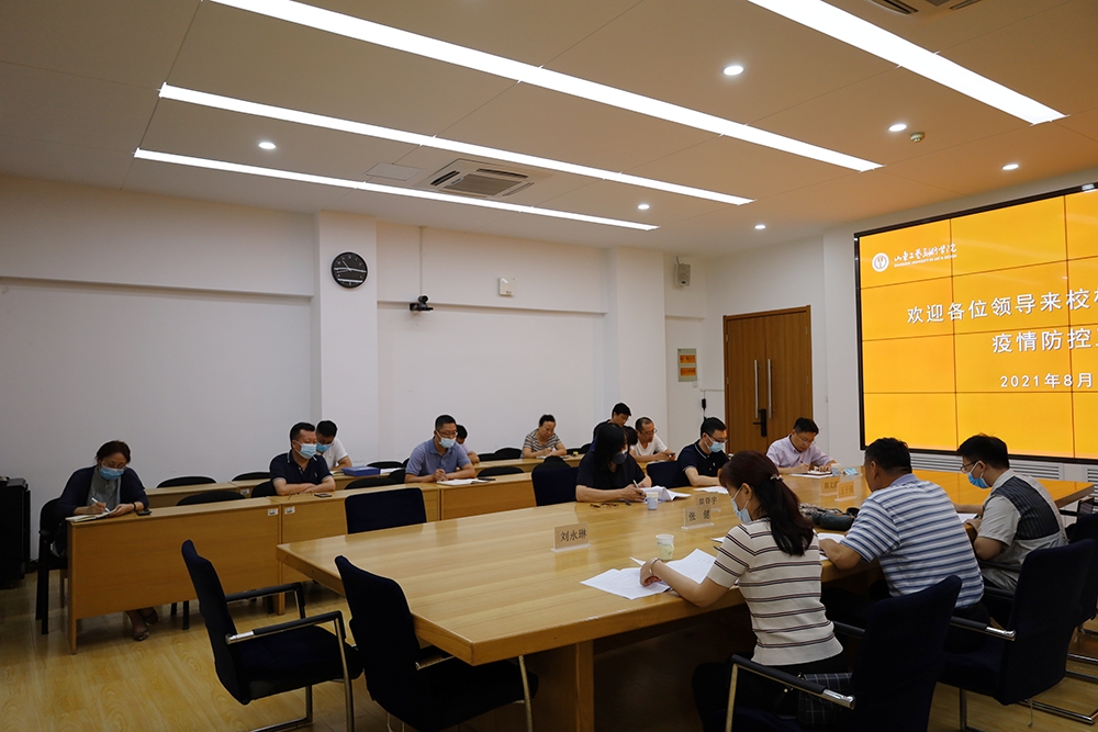 8月24日上午,受长清区疫情防控指挥部委派,长清区疾控中心食品安全与学校卫生科张健一行3人来永利官网就学校疫情防控和开学准备情况开展专项督导检查。党委副书记苗登宇,党委委员、宣传部部长韩文涛接待了检查组一行。