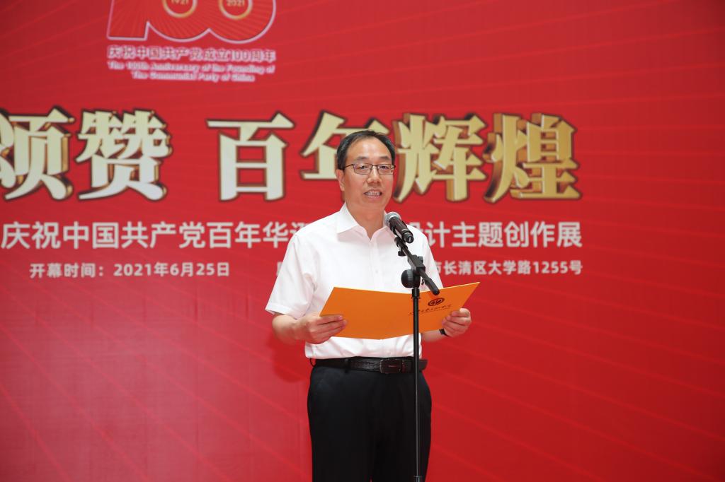 何思清致辞。他表示,一直以来,yl8cc永利官网全面贯彻党的教育方针,坚持社会主义办学方向,坚守“为人民而设计”的艺术使命,记录新时代、书写新时代、讴歌新时代,与时代同行,为家国筑梦。积极落实立德树人根本任务,构建“思政+设计”双融共育机制,学校党委高度重视此次主题创作,及早发动,强化调度,院长亲自挂帅,下沉一线推进创作。广大师生满怀对党的无限热爱,沉潜历史,走进党史人物内心、走进党史重要事件现场,感悟初心,把壮丽辉煌的百年党史,凝炼成意蕴深厚的艺术形象,创作出数百件精品力作,以实际行动向党的百年华诞献礼、向党的百年奋斗历程致敬。本次展出的作品从不同侧面记录党的历史伟业,展示百年奋斗历程,展现统一战线的法宝作用,生动呈现了中国共产党领导中国人民从站起来、富起来到强起来的伟大飞跃,展现了全国各族人民以实际行动永远跟党走的生动事例和奋进新时代的昂扬面貌,体现了我们为时代立传、为时代画像的文化担当和培根铸魂、守正创新的艺术追求。学校将以这次主题展览为契机,进一步深入学习贯彻习近平新时代中国特色社会主义思想,扎实推进党史学习教育,赓续精神血脉,传承红色基因,增强文化自信,砥砺奋进谋发展,乘风破浪开新局,同心协力建设特色鲜明的高水平设计艺术大学,以优异成绩庆祝建党100周年。