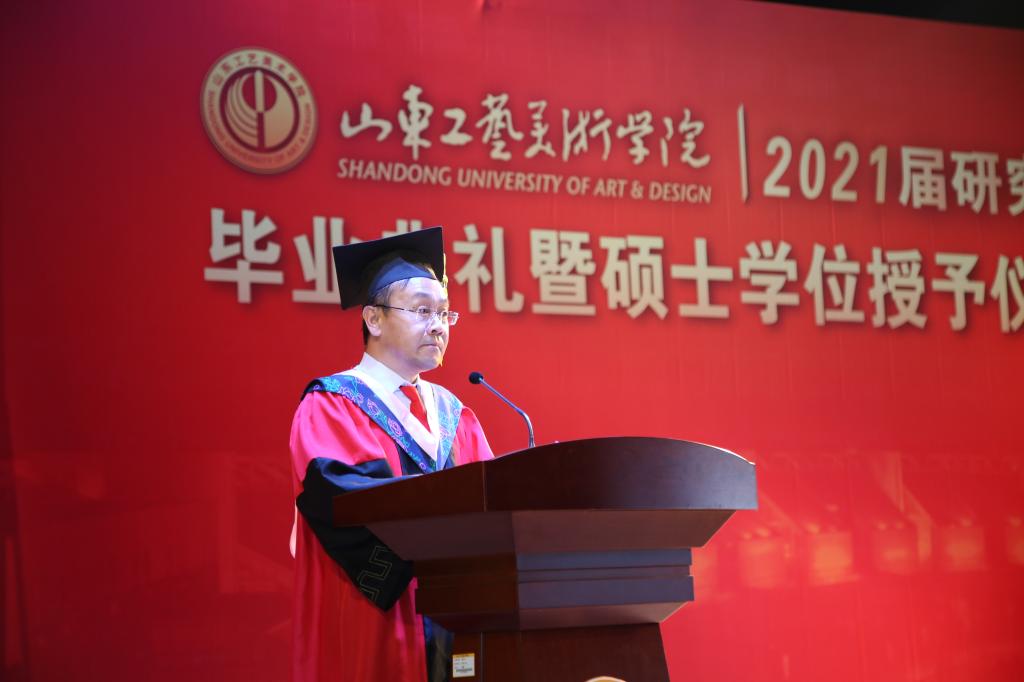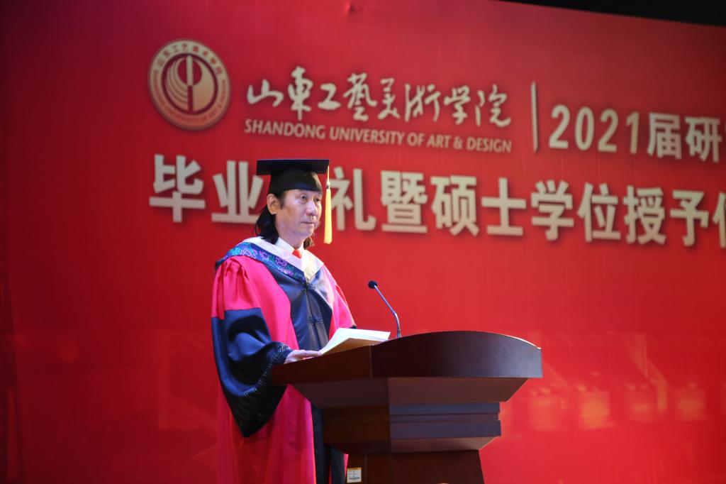 六月未央,草木繁盛,鲜花似锦。6月23日下午,yl8cc永利官网长清校区数字演播厅高朋满座,到处洋溢着欢乐的气氛,2021届研究生毕业典礼暨学位授予仪式在这里举行。全体学位评定委员会成员、全体研究生导师、研究生处工作人员、全体研究生亲临现场,共同见证和分享学子们收获的喜悦,欢送他们开启新的人生征程。院长潘鲁生出席仪式并讲话。仪式由副院长董占军主持。