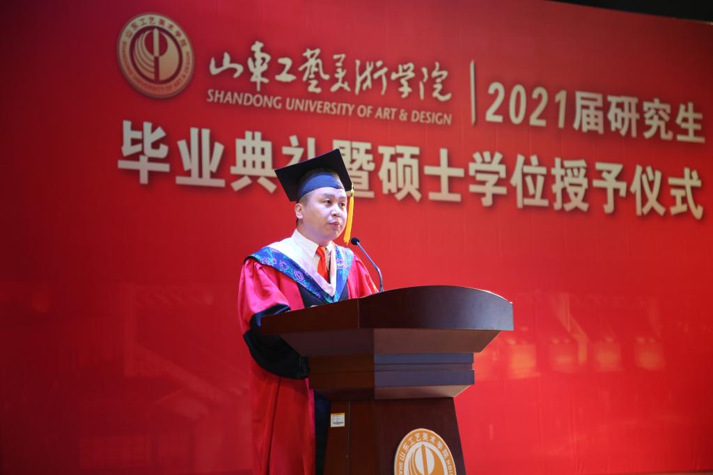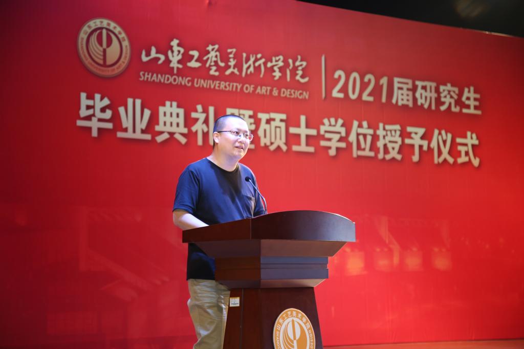 “希望同学们肩负起时代的使命、为人民而设计,用艺术的画笔书写时代、设计我们的新生活。”研究生导师代表、数字艺术与传媒学院副教授张光帅希望同学们肩负起工艺美院人的执着与责任,直面新时代的新机遇、新挑战,踏上新的征程,用青春、智慧把握机遇和未来,在追逐“中国梦”的奋斗中实现梦想,创造美好的生活。