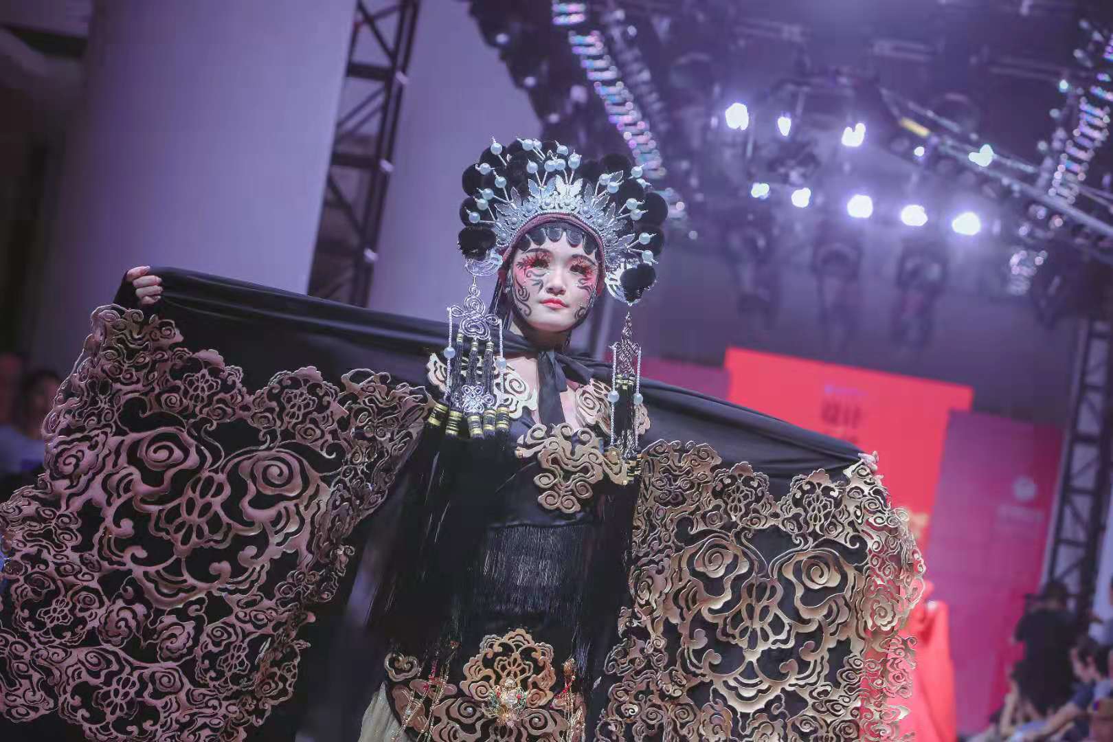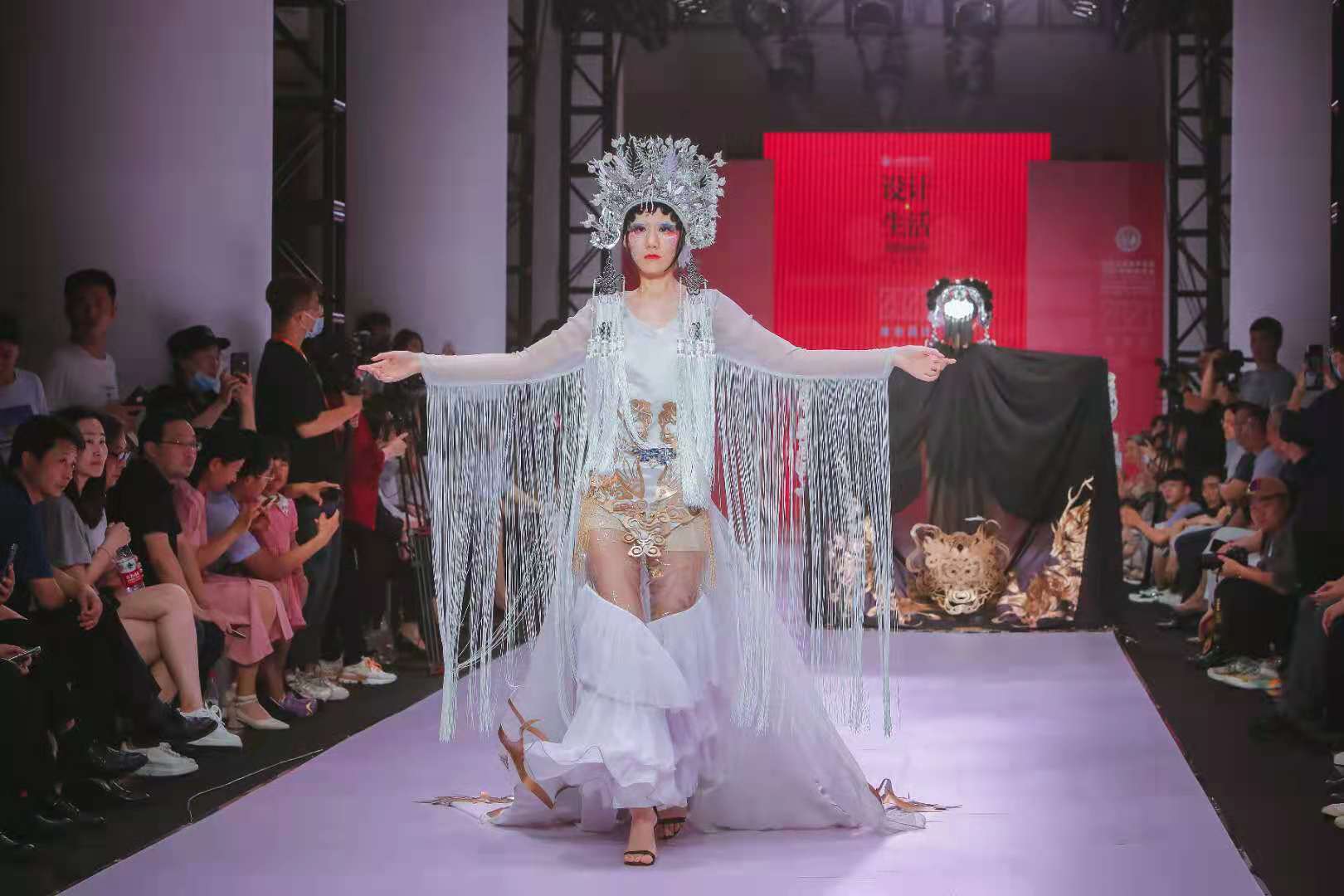 “造型+技艺”装扮设计展演,传统技艺勾画现代潮流。妆扮设计展演由应用设计学院妆扮设计专业的教师学生共同制作完成。包括中国传统创意造型、电视人物角色造型和生活新娘造型等内容,共计24套展演作品。作品从传统文化中汲取创作灵感,用高雅的服装配饰、时尚的妆面彩绘、夸张的造型创意,将传统文化与创新理念巧妙融合,让人耳目一新。