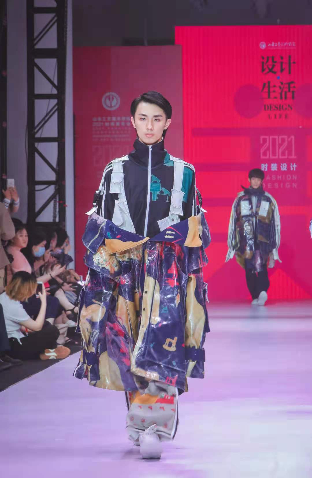 “时尚+创新”服装设计展演,绽放时代芳华。作为国家一流专业的服装与服饰设计专业、山东省一流专业表演专业和服装工程与设计专业2021届共有136名毕业生,此次共有90余套优秀作品参加展演。设计师立足用户需求,以问题为导向,积极探索中华优秀传统文化元素与现代科技的创造性结合以及对社会责任感的关注,分为传统服饰创新设计、产教融合设计、前瞻性设计三大板块,多角度展现服装学院学子的创新与设计能力,诠释了“设计服务生活”的设计理念。