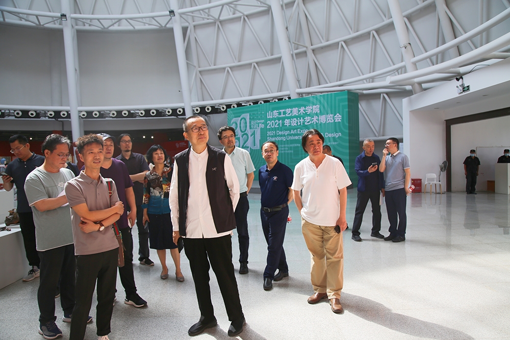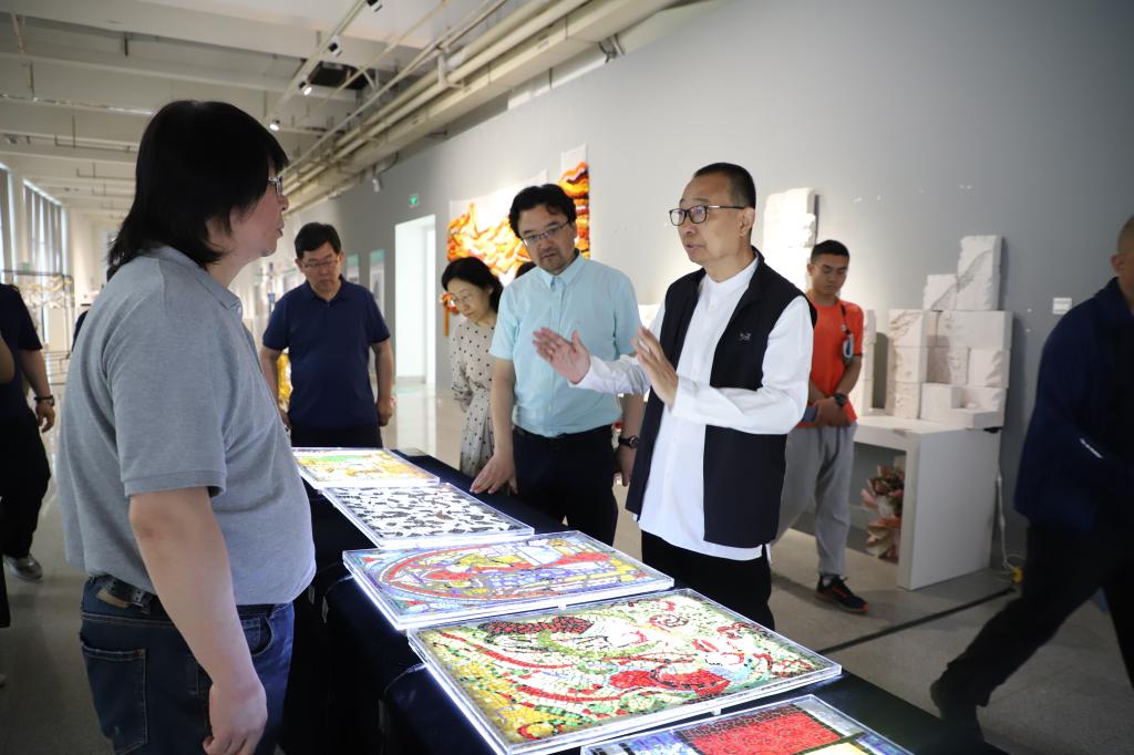 参观过程中,潘鲁生指出,要创新展览展示形式。在有实物作品或有完整的设计方案的前提下,融合科技创新和文化创意、融汇艺术理念和技术表现手段,例如纪录片、短视频、交互设计等,打造沉浸式、精品型、体验型的展览。