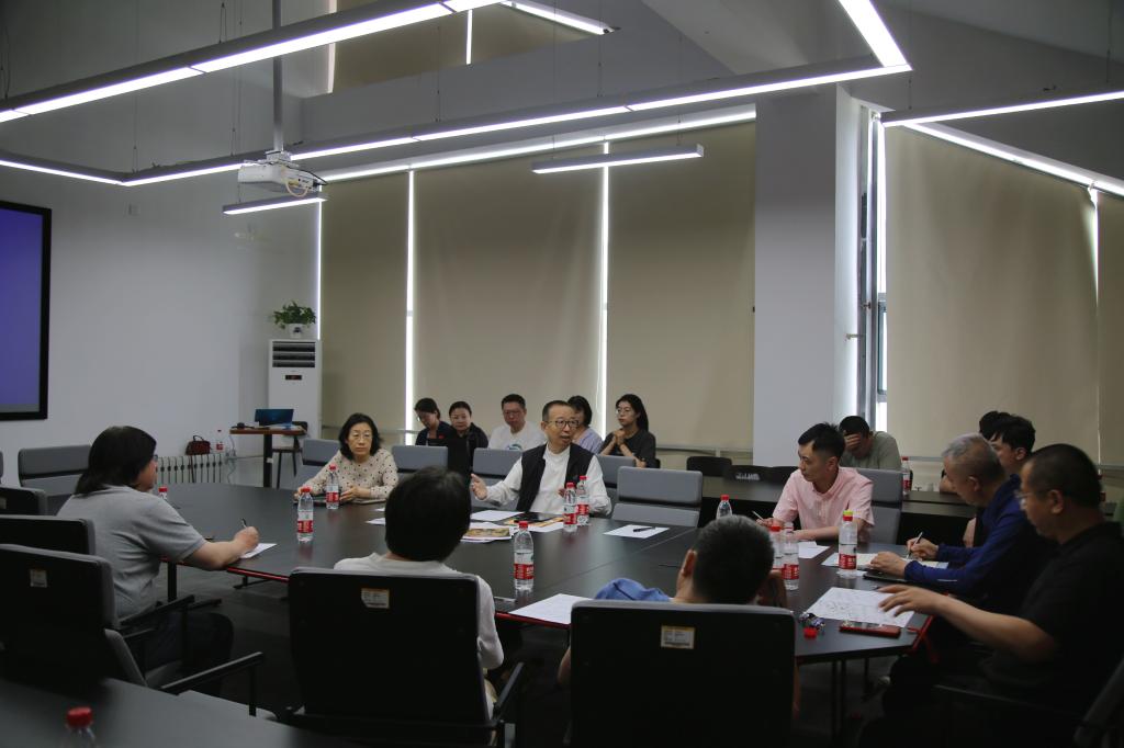 视觉传达设计学院、造型艺术学院、现代手工艺术学院、数字艺术与传媒学院等教学单位先后汇报主题创作情况。潘鲁生听取汇报后表示,从创作情况看,各教学单位精心组织、广泛动员,广大师生在秉持政治标准、历史标准、艺术标准的基础上,坚持守正创新,创作出不少“思想精深、艺术精湛、制作精良”的作品。学校官方网站、微信平台已连续发布8期创作专题,引发了广大师生强烈的情感共鸣、主流媒体广泛的传播共振和社会各界的广泛好评,主题创作取得了积极成效。