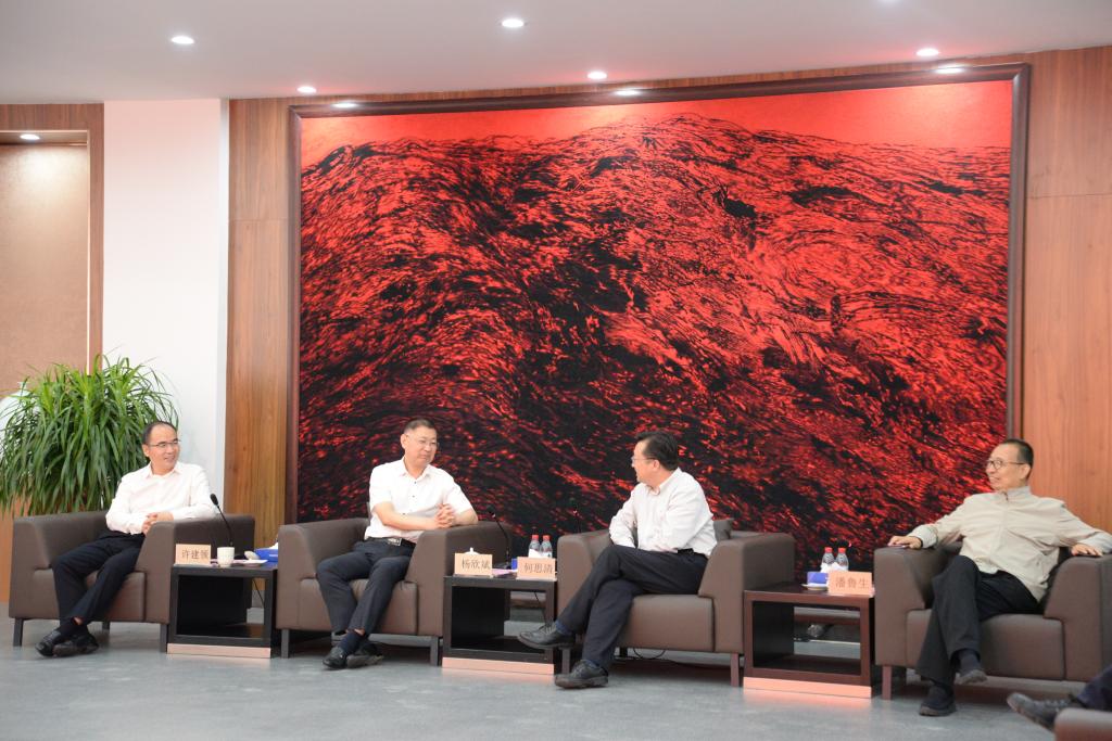 5月20日下午,深圳职业技术学院党委书记杨欣斌、校长许建领、文化创意产品研发院院长周利群等一行4人,来到永利官网长清校区参观访问。党委书记何思清、院长潘鲁生,党委委员、宣传部部长韩文涛在一楼贵宾接待室会见了杨欣斌一行,并进行座谈。