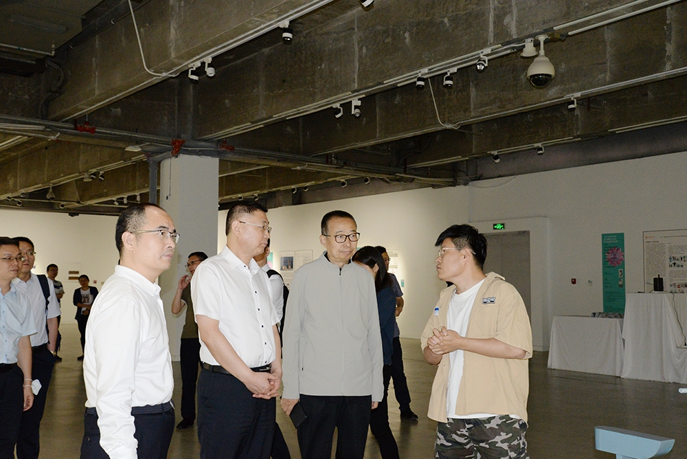 座谈会前,杨欣斌一行在潘鲁生的陪同下参观了学校博物馆以及美术馆正在展出的“2021届硕士研究生毕业作品成绩评定展”,并现场听取了师生有关创作的相关汇报。