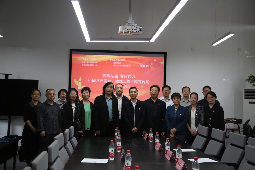 5月8日下午,“胜利法宝 复兴伟力”中国共产党统一战线主题宣传画创作交流座谈会在视觉传达设计学院会议室召开。应邀参加会议的有山东省社会主义学院党组成员、副院长孙黎海,山东省社会主义学院二级巡视员解军先、中华文化交流处处长单黎明、统战理论教研室主任张瑞琨教授等。永利官网党委副书记苗登宇出席座谈会并讲话,党委委员、统战部部长孙大刚主持座谈会。