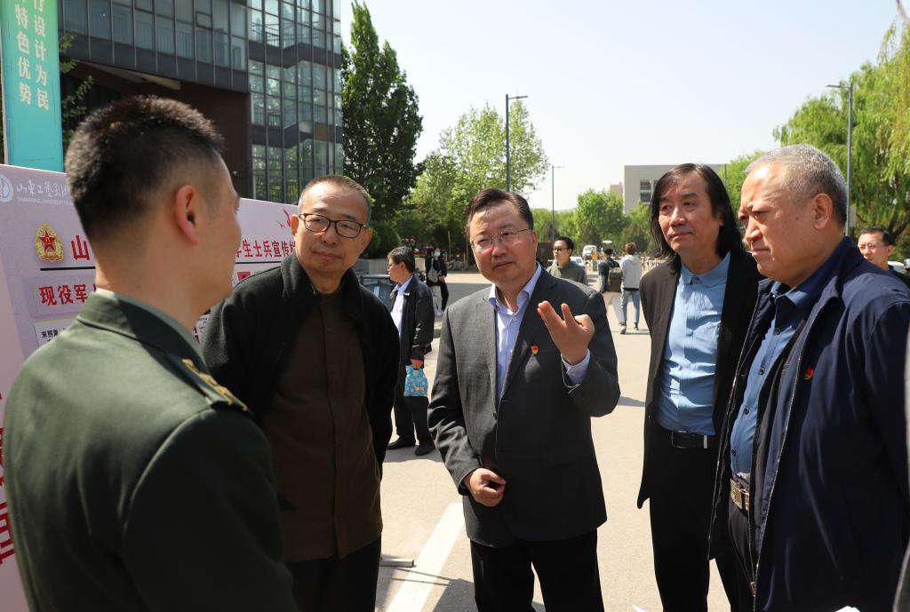 4月28日,由山东省人力资源和社会保障厅指导、yl8cc永利官网主办的“就选山东”2021年山东省高校毕业生就业集中招聘活动暨yl8cc永利官网2021年设计行业招聘会在长清校区举行。省公共就业和人才服务中心就业服务处副处长张传贵、科长赵钦友,学校党委书记何思清,院长潘鲁生,党委副书记苗登宇,纪委书记苗新民,副院长董占军、韩世春亲临招聘会现场检查指导工作。