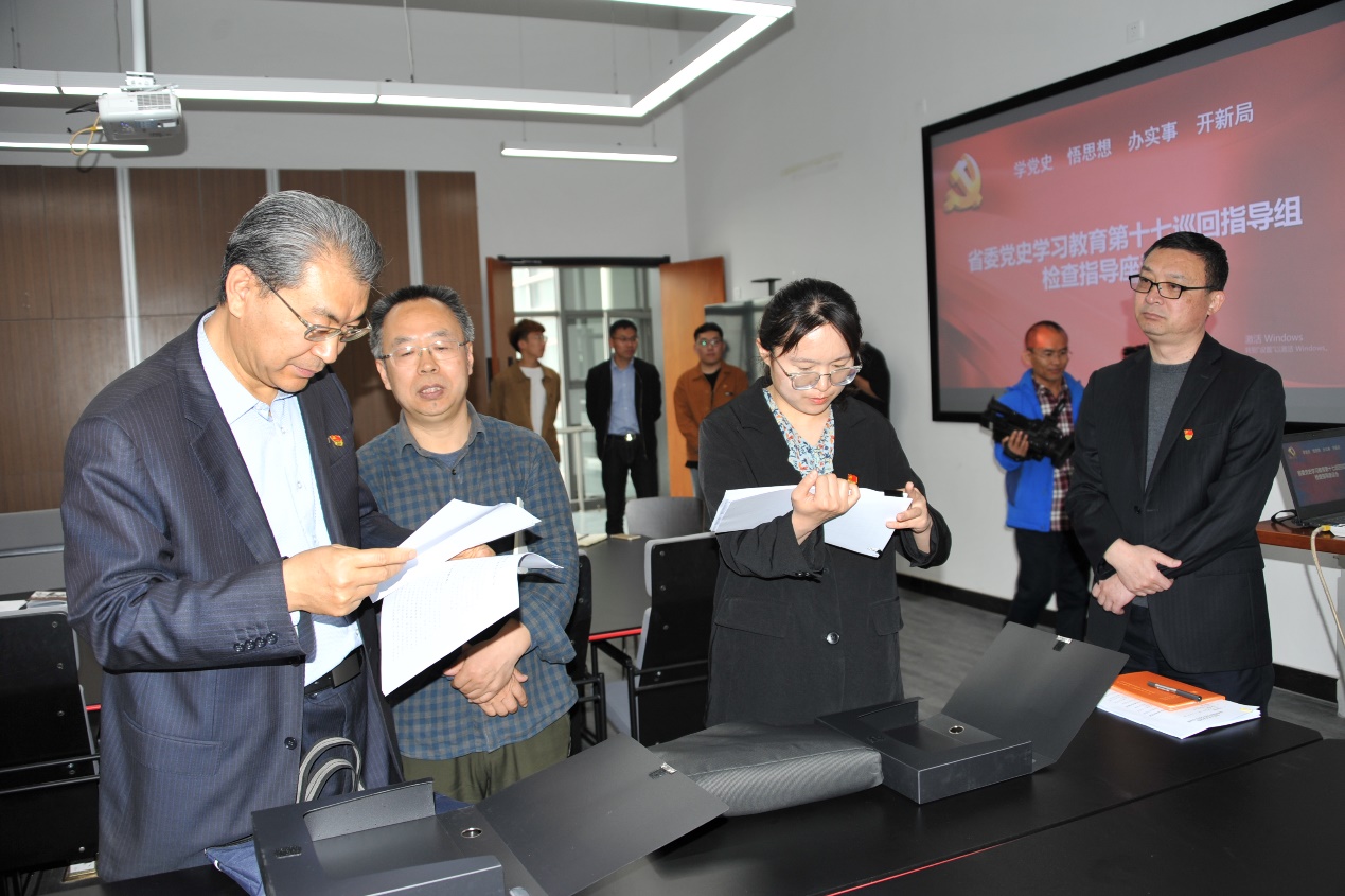 4月20日,省委党史学习教育第十七巡回指导组副组长齐浚、成员周慧到yl8cc永利官网检查指导党史学习教育工作。学校领导何思清、苗登宇、李新、苗新民、董占军、韩世春、孙大刚、韩文涛、许磊参加活动。