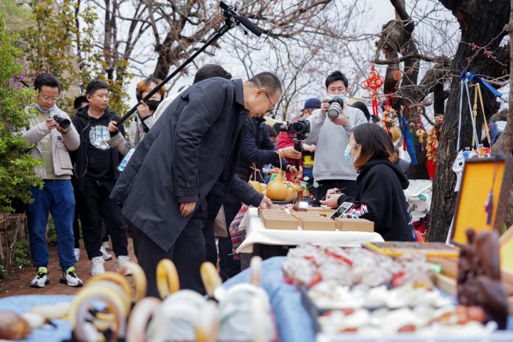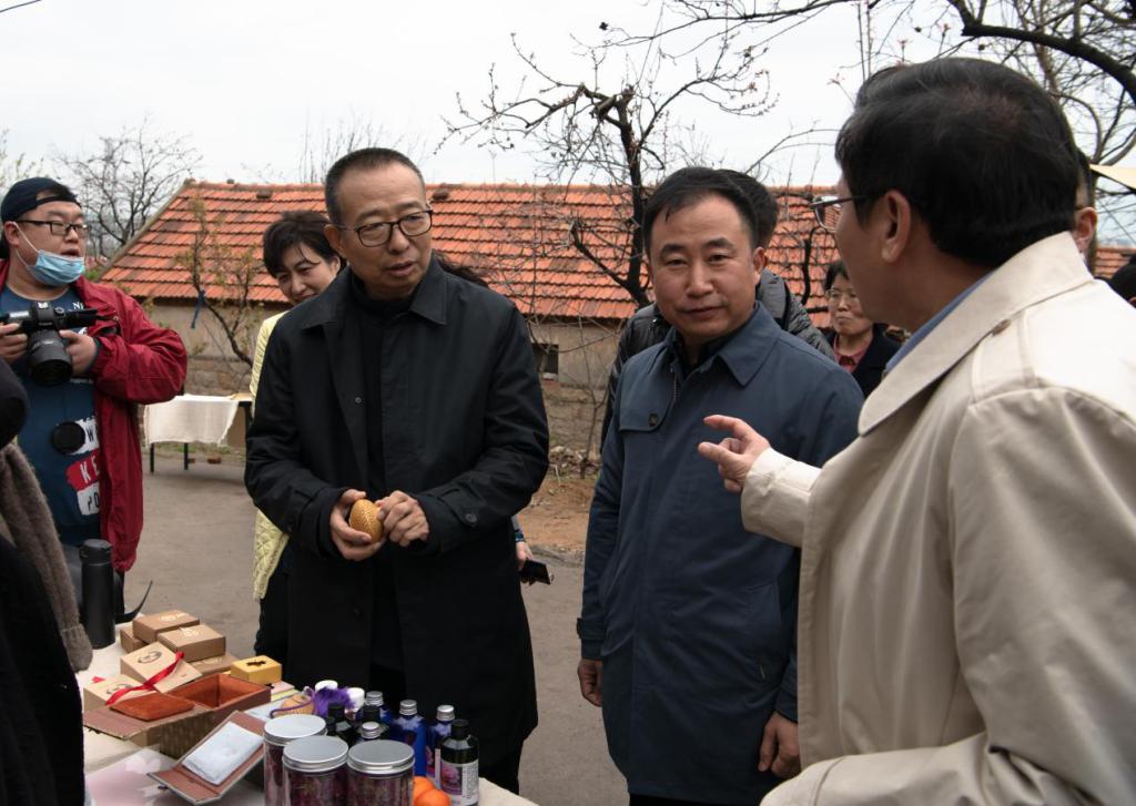 潘鲁生在灵山卫街道调研乡村文化旅游和文创市集,与参加乡村美学主题分享会的文化爱好者进行交流。调研过程中,正逢当地村乡村文化创意“杏运市集”开集,潘鲁生对在一个小山村里看到乡土气息与时尚艺术元素完美融合的乡村文创市集表示赞赏。潘鲁生指出,发展乡村旅游,不只是打造旅游景点,而是在保护和建设好乡村自然与文化生态的基础上,活化乡村文化资源,凸显乡村特色和吸引力,为高速发展的现代化城市保留一处“乡愁”,让更多的人感受乡愁的深度和乡土的温度。