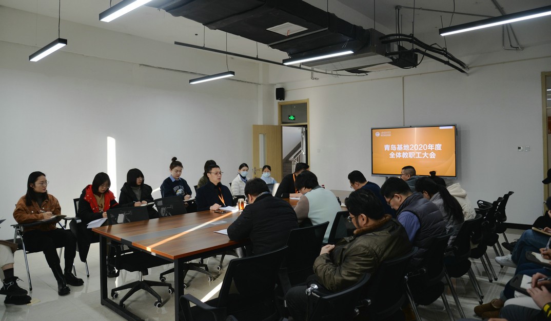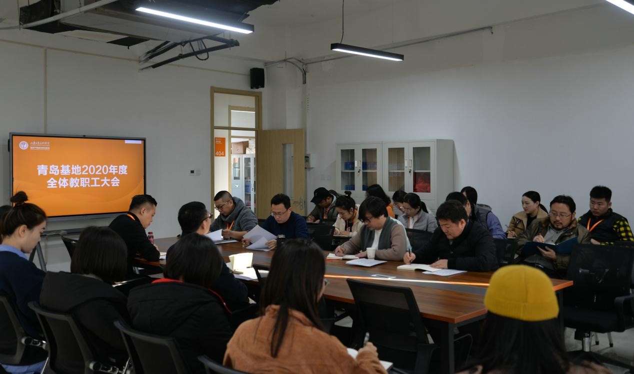 12月24日上午,学校国家产教融合青岛基地2020年度全体教职工会议在基地产教综合楼四楼会议室召开。党委委员、青岛基地管委会主任韩文涛主持会议,基地全体教职员工参加会议。