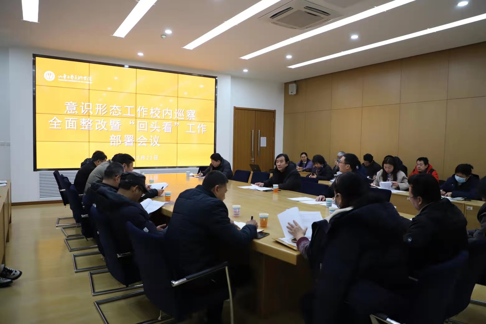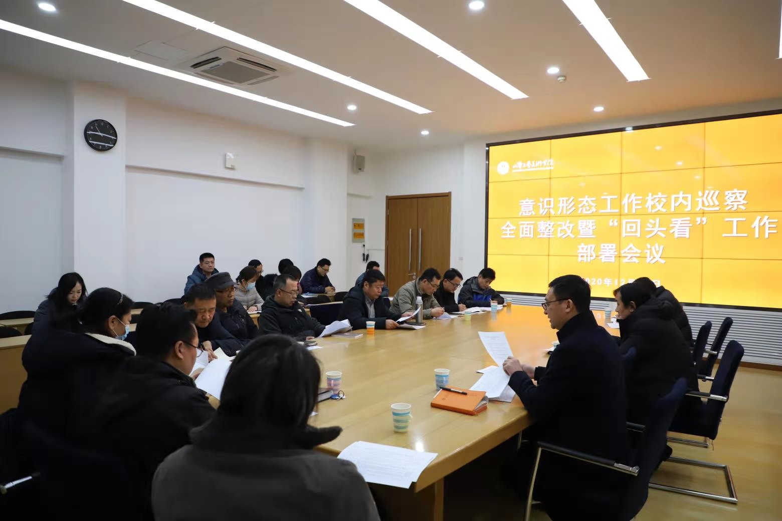 12月22日,学校召开意识形态工作校内巡察全面整改暨“回头看”工作部署会议。党委副书记苗登宇出席会议并讲话。党委委员、宣传部部长、党办(院办)主任韩文涛,党委委员、组织部部长许磊参加会议。会议由韩文涛主持。