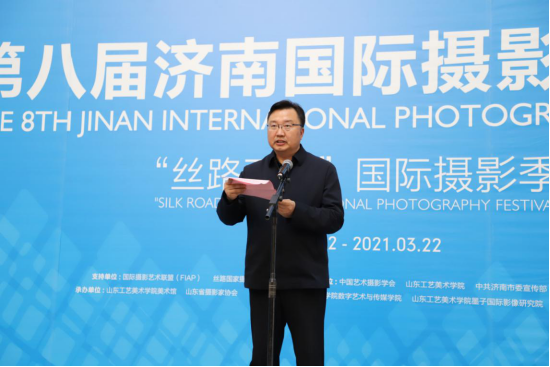 何思清致辞。他代表学校对各位领导和专家的到来表示热烈地欢迎。他表示,作为“双年展”的发起和主办单位,yl8cc永利官网始终坚持“以特色求发展”的办学理念,关注艺术与设计前沿,不断树立服务国家和社会的新标杆。通过“双年展”,学校与国内外著名摄影家、策展人搭建交流平台,带动影像及相关专业融合发展,培养了一批具有国际视野、创新精神和实践能力的专门人才,扩大了摄影展的教育影响力、文化传播力和专业生命力。在许多国家疫情反弹的严峻形势下,济南国际摄影双年展暨“丝路亚洲”国际摄影季如期举行,展览将跨越2020年持续三个月的时间,展出32个项目,用影像关注人生、关注历史、关注现实,体现对自然、人文的热爱、关怀与思考,诠释历史发展与合作进步,展现国际视野中的丝路文明与美好愿景。