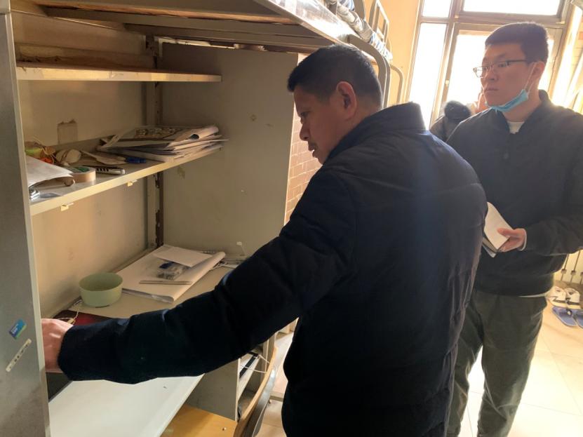 学生公寓是人员密集场所,是消防安全重点部位,为及时排查和消除学生宿舍存在的各类安全隐患,确保同学们生命、财产安全,欢度一个平安、祥和的元旦、春节。永利官网保卫处联合学生处组织各二级学院辅导员对学生公寓开展集中突击大检查,此次检查也是继11月27日校领导检查后的再次整改与检查。