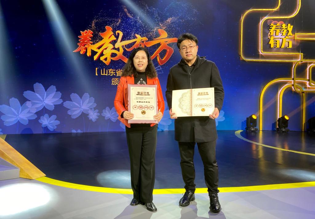 11月20日,颁奖典礼在山东教育电视台举行。山东省人大常委会副主任、 山东省工商联主席王随莲, 山东省关工委常务副主任崔曰臣,山东省委教育工委常务副书记省教育厅党组书记、厅长邓云峰, 山东省文明办副主任孙文利,山东省妇联副主席迟蕾参加颁奖典礼。永利官网妇委会主任、工会副主席黄美玉和张培源应邀参加颁奖典礼并领取荣誉证书。