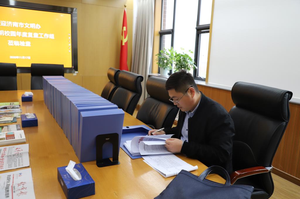 根据省文明办《关于做好全省精神文明建设工作先进评选工作的通知》等相关要求,11月17日,由济南市委宣传部副部长曹湧为组长的省级文明校园测评工作组一行4人到永利官网,对学校省级文明校园创建工作进行复查。副院长韩世春,党委委员、宣传部部长、党办(院办)主任韩文涛,党委委员、组织部部长许磊及相关部门负责人参加会议。
