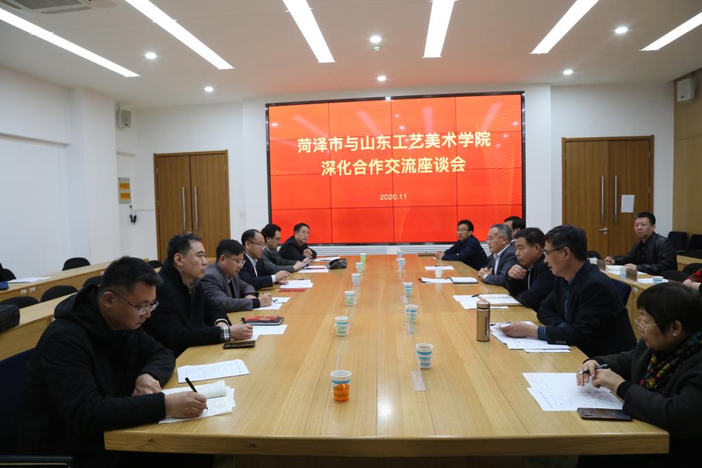 推介活动结束后,学校领导和菏泽市领导一行在第三会议室进行深化合作交流座谈。