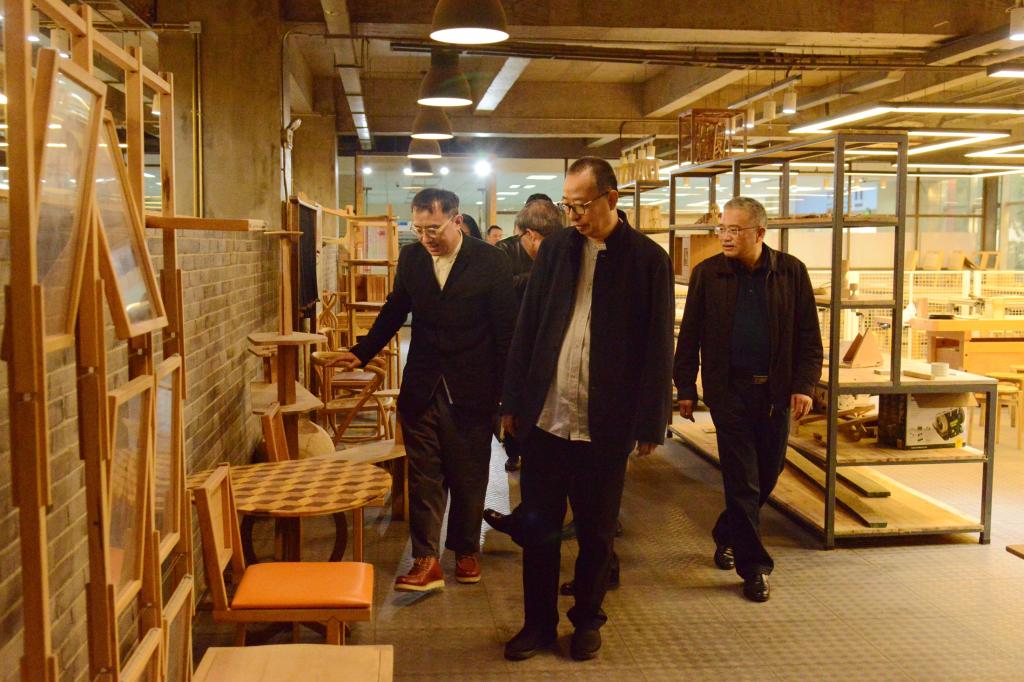 会后,潘鲁生参观考察了湖北工业大学艺术设计学院艺术馆、院史馆、设计实验室、工业设计学院材料成型与创新实验中心、跨学科综合创新实验中心、跨学科工业设计研究中心、校企合作/国家课题工作室、明清家具博物馆等场所。