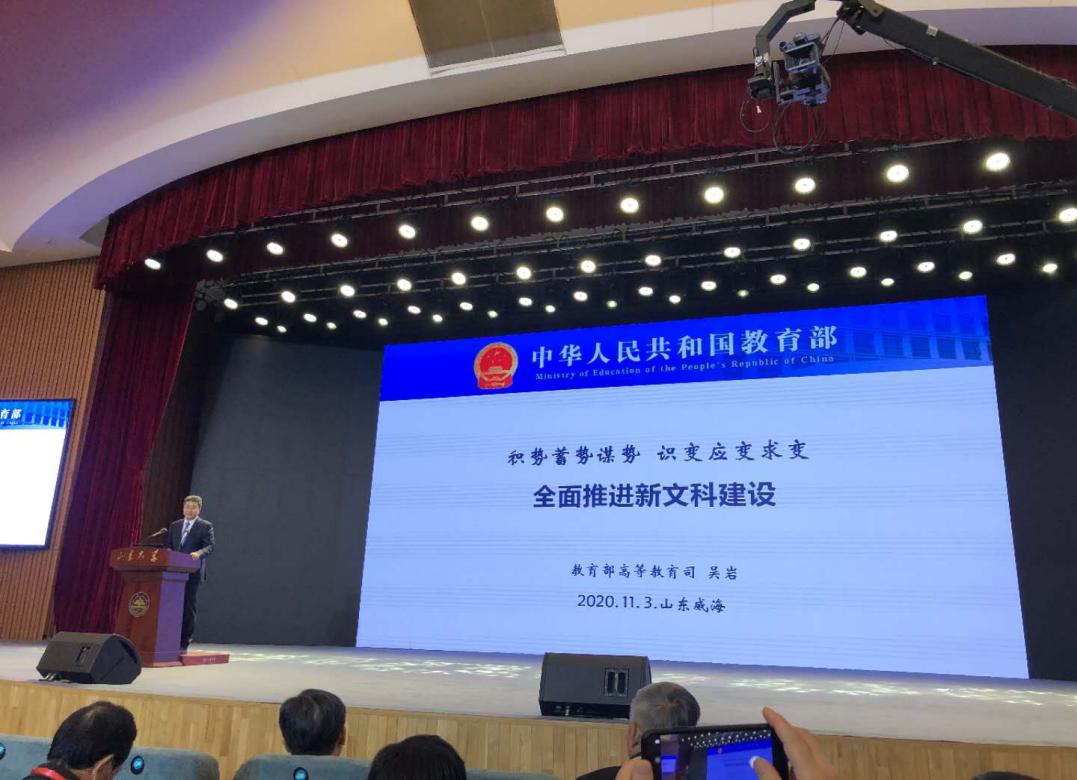 为深入学习贯彻习近平新时代中国特色社会主义思想和党的十九大精神,贯彻全国教育大会精神,落实新时代全国高等学校本科教育工作会议要求,推动新时代高等文科教育创新发展,11月3日,由教育部新文科建设工作组主办的新文科建设工作会议在山东大学(威海)召开。永利官网副院长董占军在威海主会场出席会议。